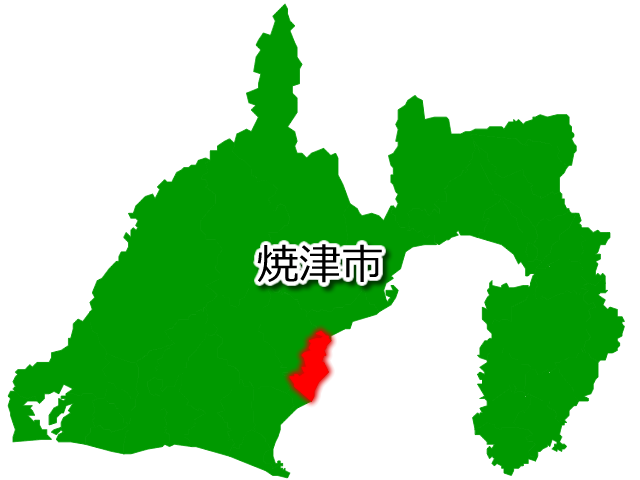 静岡県焼津市を示す画像を元に、目的地案内や出身地説明、ルート案内や学習コンテンツなどにご活用ください。