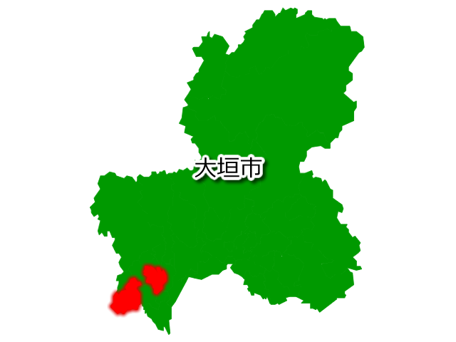 岐阜県大垣市を示す画像を元に、目的地案内や出身地説明、ルート案内や学習コンテンツなどにご活用ください。