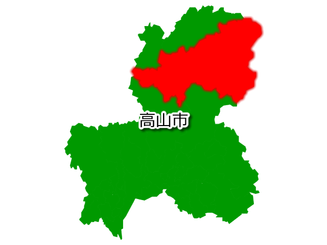 岐阜県高山市(たかやまし)の場所を示す画像です。PNG透明形式ファイルです。