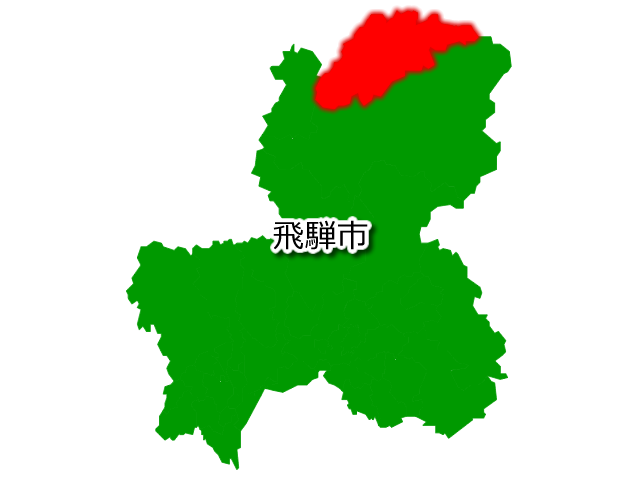 岐阜県飛騨市を示す画像を元に、目的地案内や出身地説明、ルート案内や学習コンテンツなどにご活用ください。
