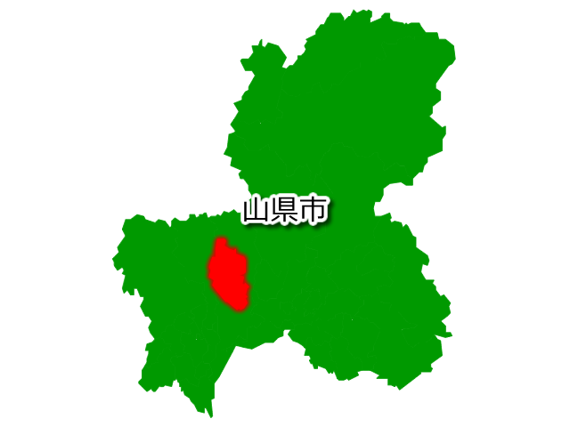 岐阜県山県市を示す画像を元に、目的地案内や出身地説明、ルート案内や学習コンテンツなどにご活用ください。