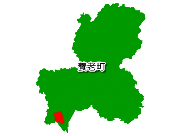 岐阜県養老町を示す画像を元に、目的地案内や出身地説明、ルート案内や学習コンテンツなどにご活用ください。