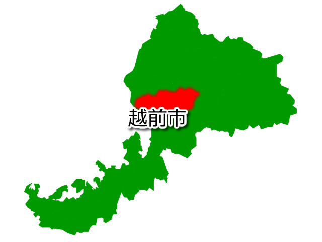 福井県越前市を示す画像を元に、目的地案内や出身地説明、ルート案内や学習コンテンツなどにご活用ください。
