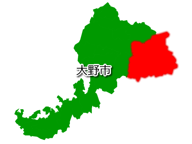 福井県大野市(おおのし)の場所を示す画像です。PNG透明形式ファイルです。