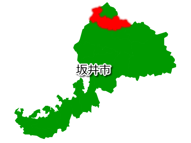 福井県坂井市を示す画像を元に、目的地案内や出身地説明、ルート案内や学習コンテンツなどにご活用ください。