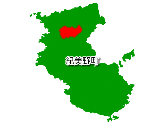 和歌山県紀美野町を示す画像を元に、目的地案内や出身地説明、ルート案内や学習コンテンツなどにご活用ください。