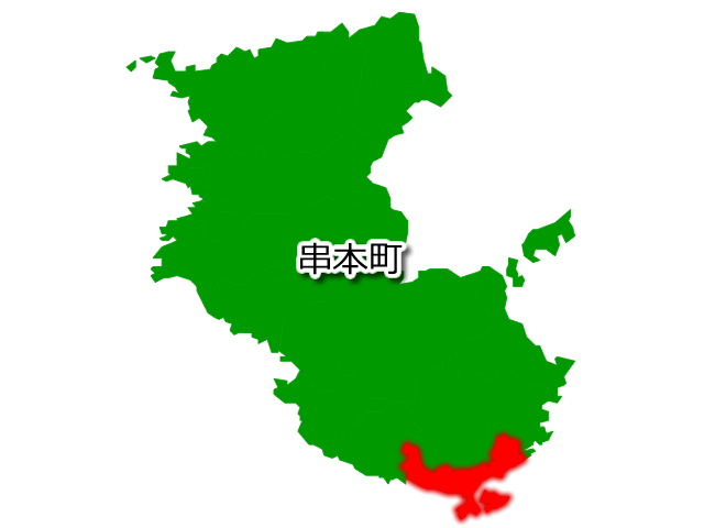 和歌山県串本町を示す画像を元に、目的地案内や出身地説明、ルート案内や学習コンテンツなどにご活用ください。