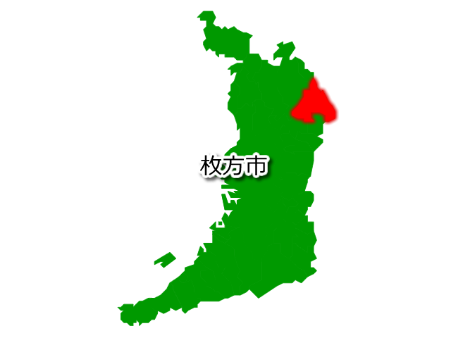 大阪府枚方市を示す画像を元に、目的地案内や出身地説明、ルート案内や学習コンテンツなどにご活用ください。