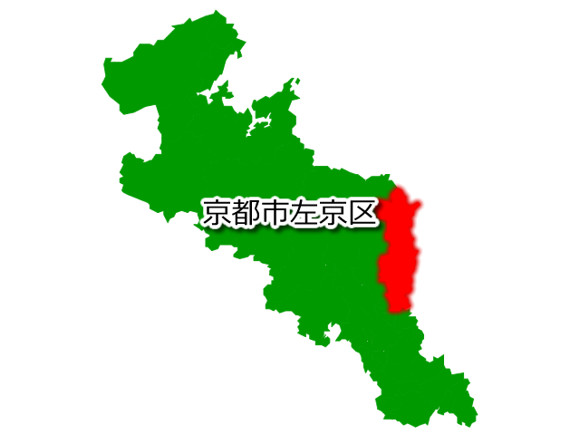 京都府京都市左京区(きょうとしさきょうく)の場所を示す画像です。PNG透明形式ファイルです。