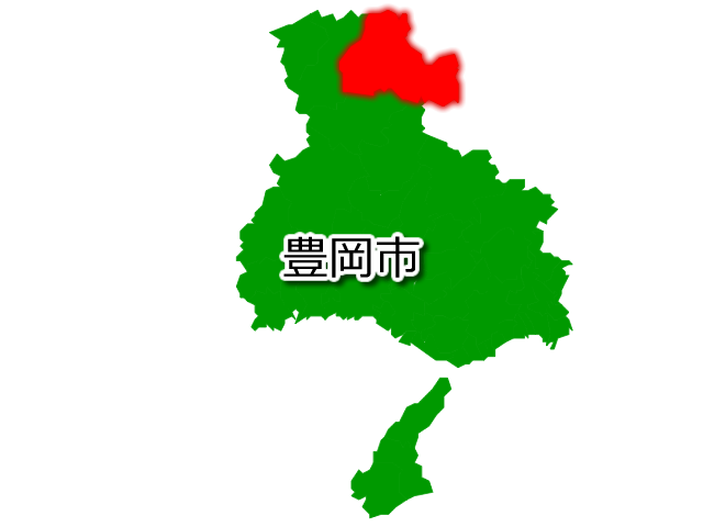 兵庫県豊岡市を示す画像を元に、目的地案内や出身地説明、ルート案内や学習コンテンツなどにご活用ください。