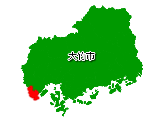広島県大竹市を示す画像を元に、目的地案内や出身地説明、ルート案内や学習コンテンツなどにご活用ください。