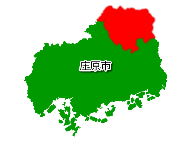 広島県庄原市を示す画像を元に、目的地案内や出身地説明、ルート案内や学習コンテンツなどにご活用ください。