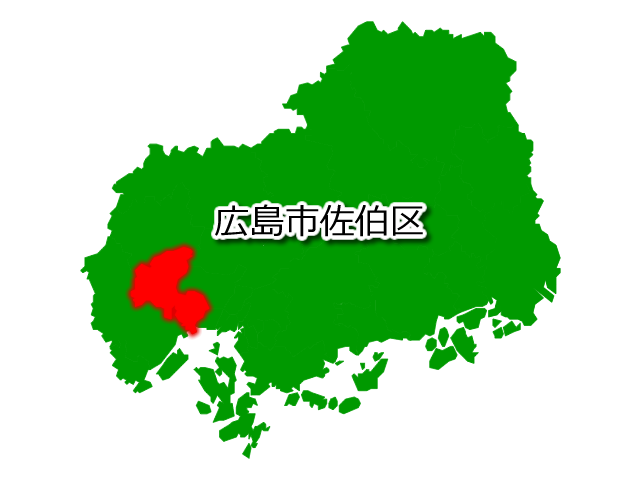 広島県広島市佐伯区を示す画像を元に、目的地案内や出身地説明、ルート案内や学習コンテンツなどにご活用ください。