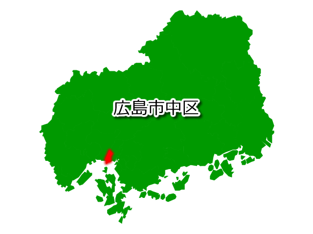 広島県広島市中区を示す画像を元に、目的地案内や出身地説明、ルート案内や学習コンテンツなどにご活用ください。