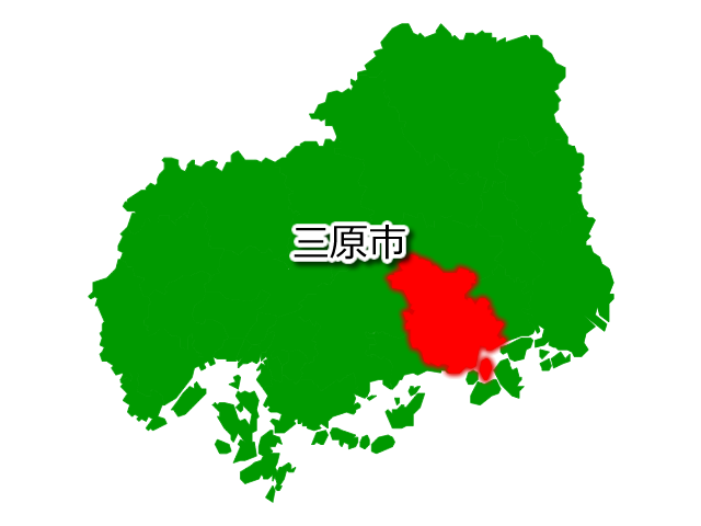 広島県三原市を示す画像を元に、目的地案内や出身地説明、ルート案内や学習コンテンツなどにご活用ください。