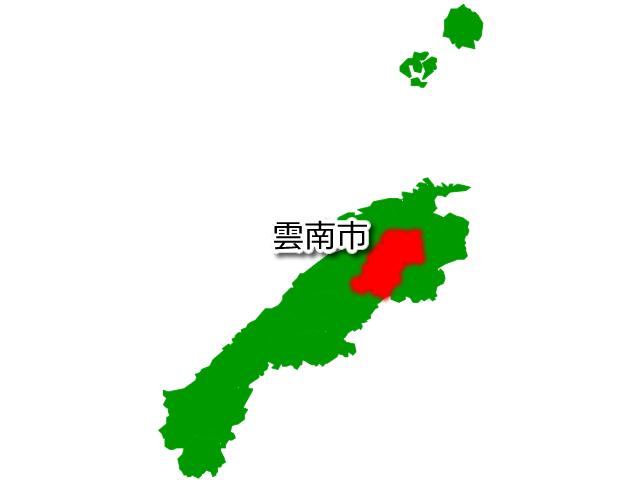 島根県雲南市を示す画像を元に、目的地案内や出身地説明、ルート案内や学習コンテンツなどにご活用ください。