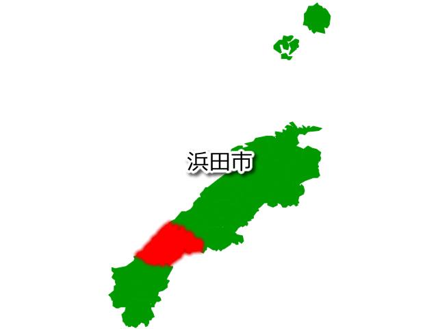 島根県浜田市を示す画像を元に、目的地案内や出身地説明、ルート案内や学習コンテンツなどにご活用ください。