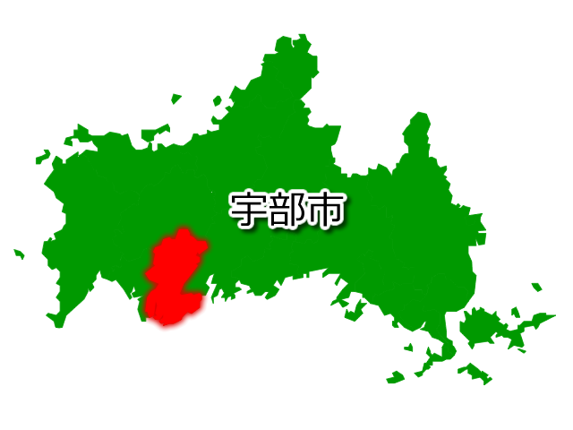 山口県宇部市を示す画像を元に、目的地案内や出身地説明、ルート案内や学習コンテンツなどにご活用ください。