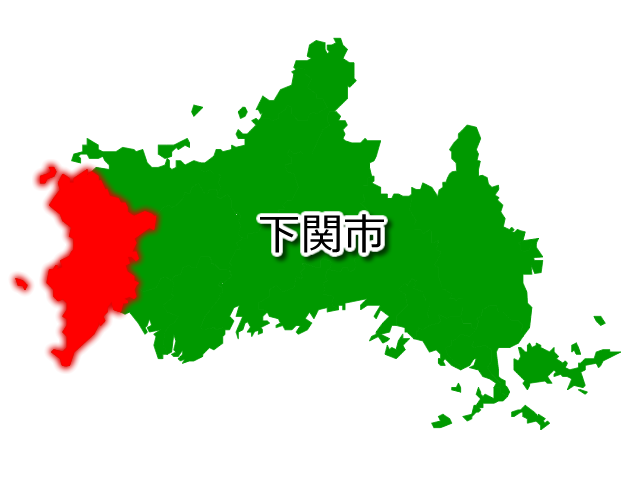 山口県下関市(しものせきし)の場所を示す画像です。PNG透明形式ファイルです。