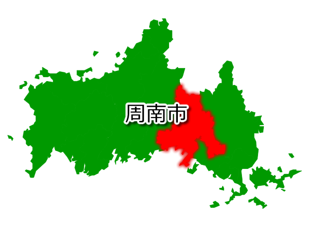 山口県周南市(しゅうなんし)の場所を示す画像です。PNG透明形式ファイルです。