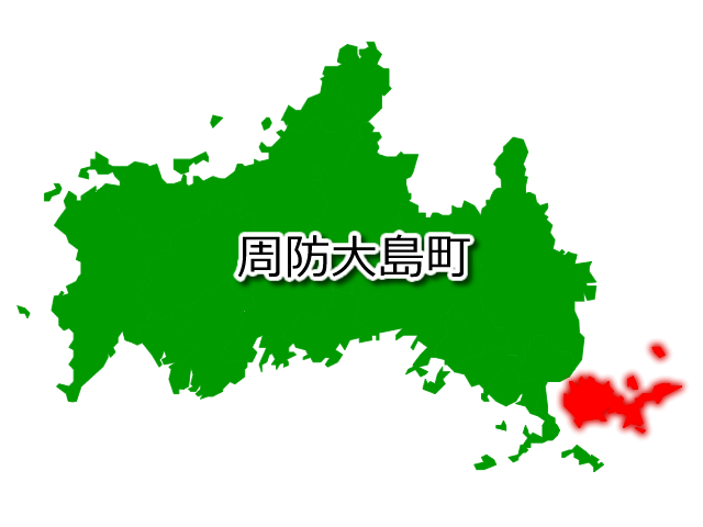 山口県周防大島町(すおうおおしまちょう)の場所を示す画像です。PNG透明形式ファイルです。