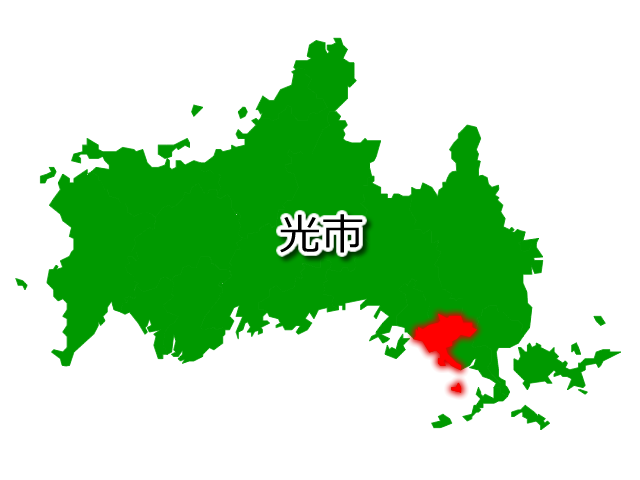 山口県光市を示す画像を元に、目的地案内や出身地説明、ルート案内や学習コンテンツなどにご活用ください。