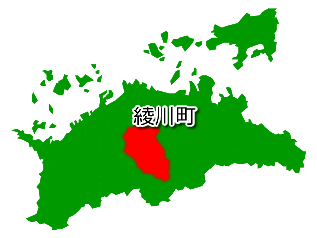 香川県綾川町を示す画像を元に、目的地案内や出身地説明、ルート案内や学習コンテンツなどにご活用ください。
