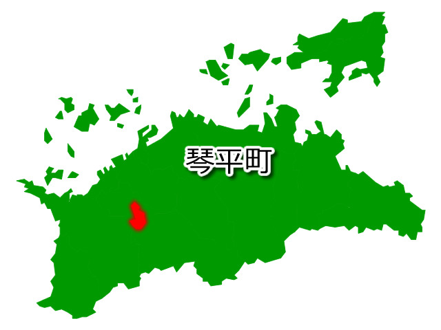 香川県琴平町(ことひらちょう)の場所を示す画像です。PNG透明形式ファイルです。