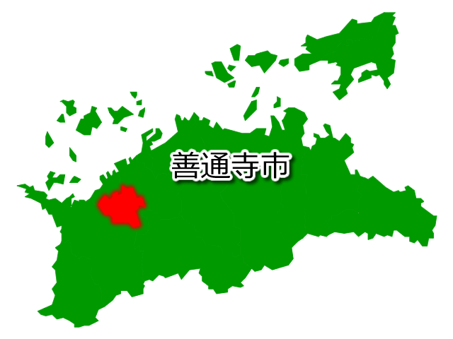 香川県善通寺市(ぜんつうじし)の場所を示す画像です。PNG透明形式ファイルです。