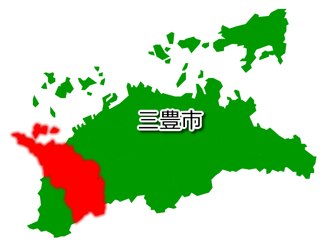香川県三豊市を示す画像を元に、目的地案内や出身地説明、ルート案内や学習コンテンツなどにご活用ください。