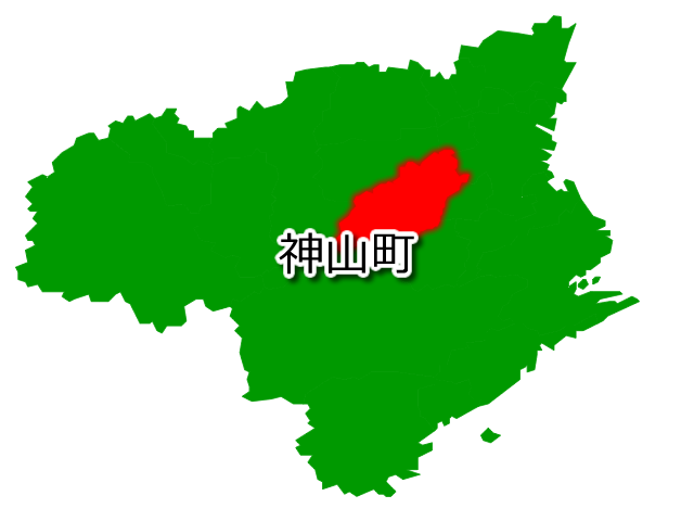 徳島県神山町を示す画像を元に、目的地案内や出身地説明、ルート案内や学習コンテンツなどにご活用ください。