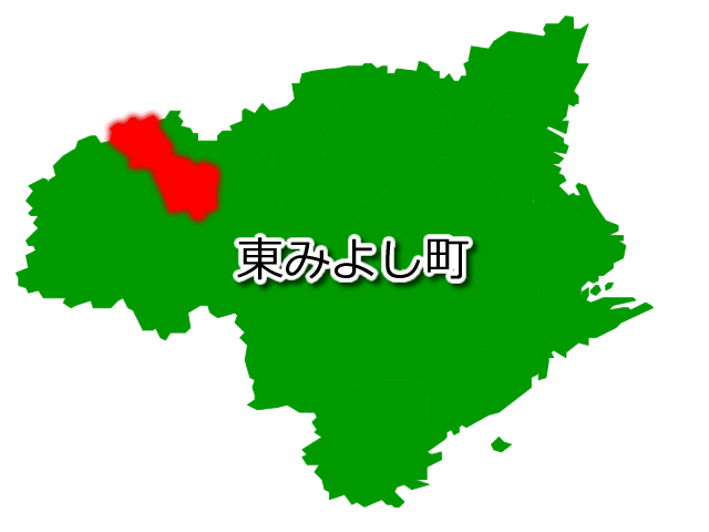 徳島県東みよし町(ひがしみよしちょう)の場所を示す画像です。PNG透明形式ファイルです。