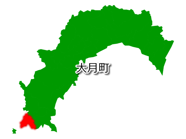 高知県大月町(おおつきちょう)の場所を示す画像です。PNG透明形式ファイルです。