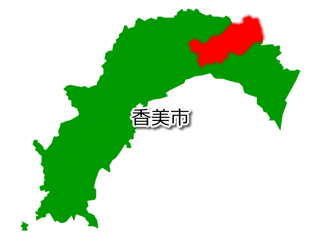 高知県香美市を示す画像を元に、目的地案内や出身地説明、ルート案内や学習コンテンツなどにご活用ください。
