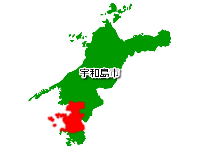 愛媛県宇和島市を示す画像を元に、目的地案内や出身地説明、ルート案内や学習コンテンツなどにご活用ください。