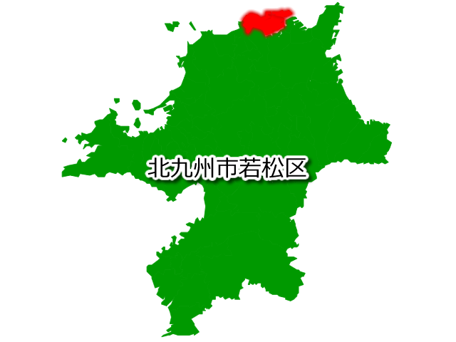 福岡県北九州市若松区を示す画像を元に、目的地案内や出身地説明、ルート案内や学習コンテンツなどにご活用ください。