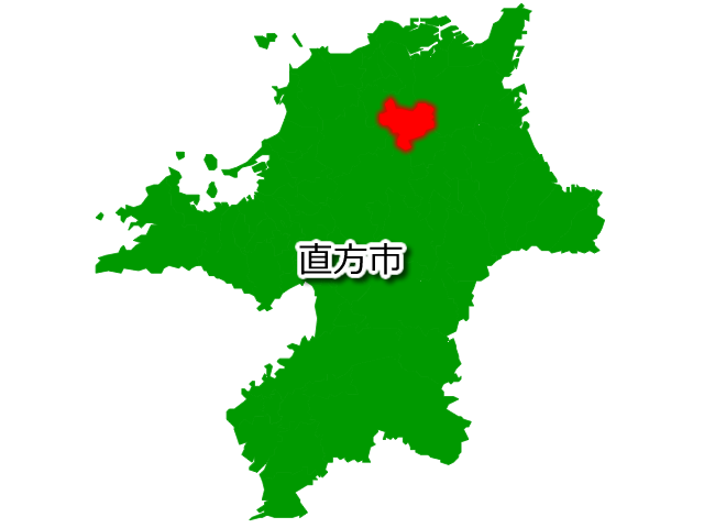 福岡県直方市を示す画像を元に、目的地案内や出身地説明、ルート案内や学習コンテンツなどにご活用ください。