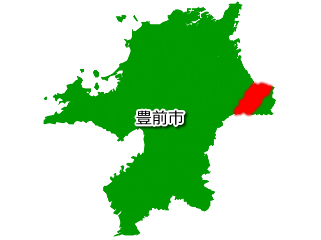 福岡県豊前市を示す画像を元に、目的地案内や出身地説明、ルート案内や学習コンテンツなどにご活用ください。