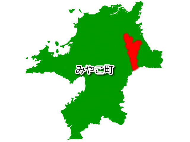 福岡県みやこ町を示す画像を元に、目的地案内や出身地説明、ルート案内や学習コンテンツなどにご活用ください。