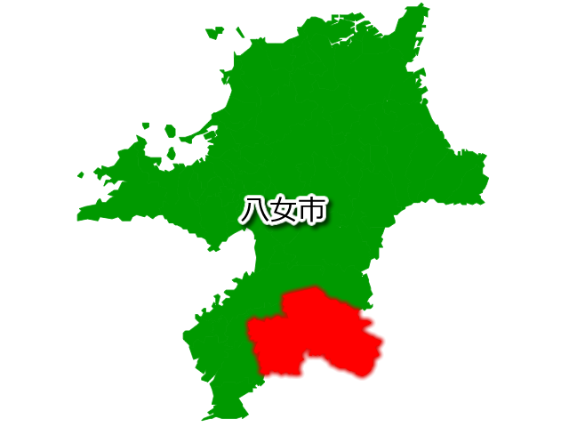福岡県八女市(やめし)の場所を示す画像です。PNG透明形式ファイルです。