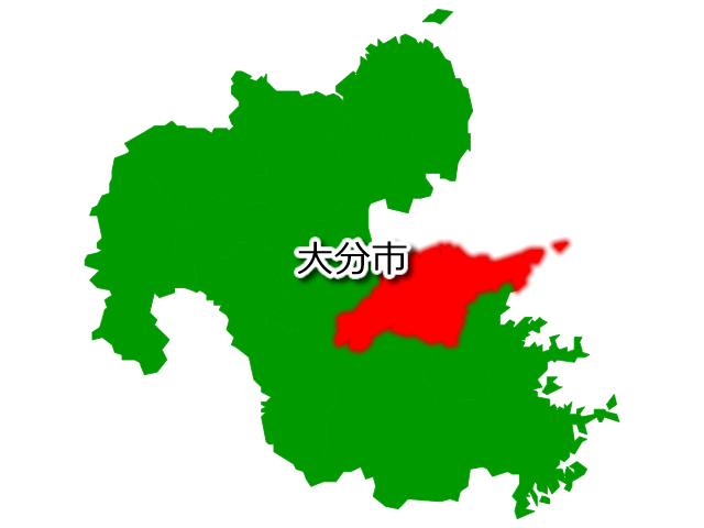 大分県大分市を示す画像を元に、目的地案内や出身地説明、ルート案内や学習コンテンツなどにご活用ください。