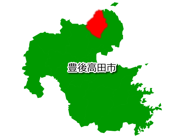 大分県豊後高田市(ぶんごたかだし)の場所を示す画像です。PNG透明形式ファイルです。
