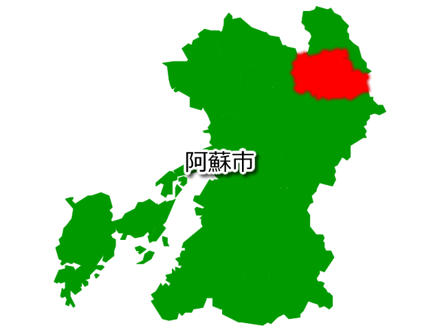 熊本県阿蘇市を示す画像を元に、目的地案内や出身地説明、ルート案内や学習コンテンツなどにご活用ください。