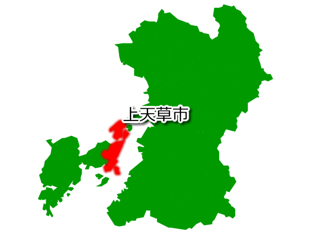 熊本県上天草市(かみあまくさし)の場所を示す画像です。PNG透明形式ファイルです。