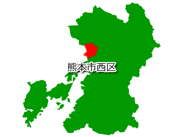 熊本県熊本市西区(くまもとしにしく)の場所を示す画像です。PNG透明形式ファイルです。