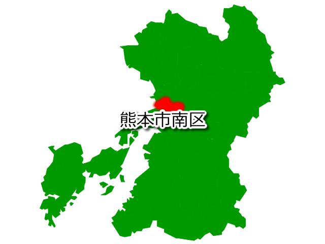 熊本県熊本市南区(くまもとしみなみく)の場所を示す画像です。PNG透明形式ファイルです。