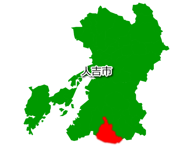 熊本県人吉市を示す画像を元に、目的地案内や出身地説明、ルート案内や学習コンテンツなどにご活用ください。