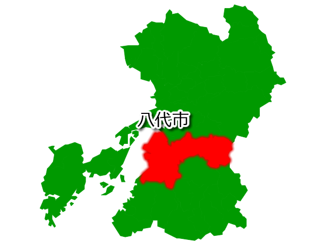 熊本県八代市を示す画像を元に、目的地案内や出身地説明、ルート案内や学習コンテンツなどにご活用ください。