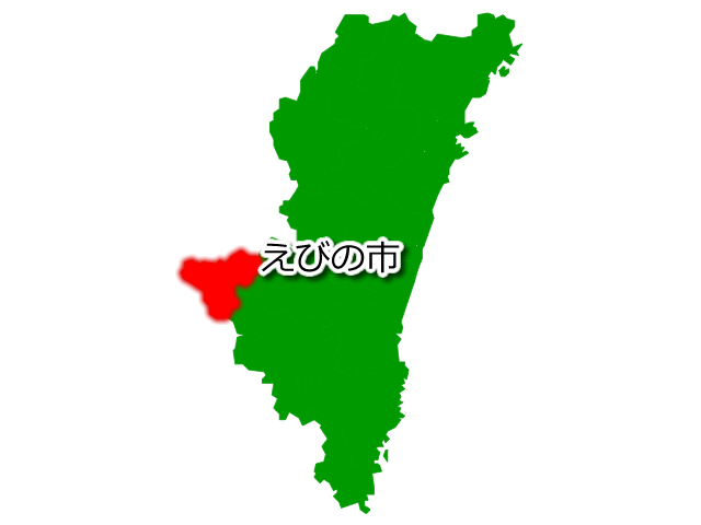 宮崎県えびの市(えびのし)の場所を示す画像です。PNG透明形式ファイルです。