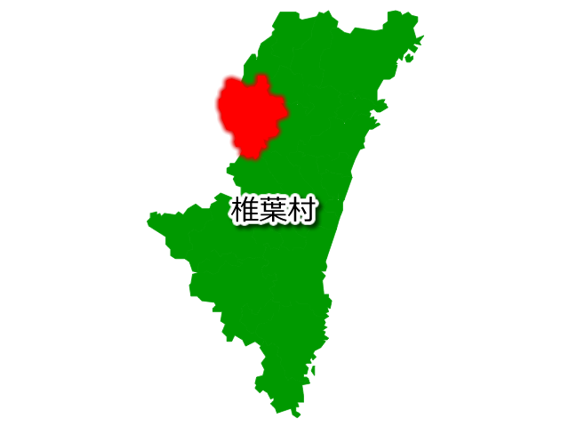 宮崎県椎葉村(しいばそん)の場所を示す画像です。PNG透明形式ファイルです。